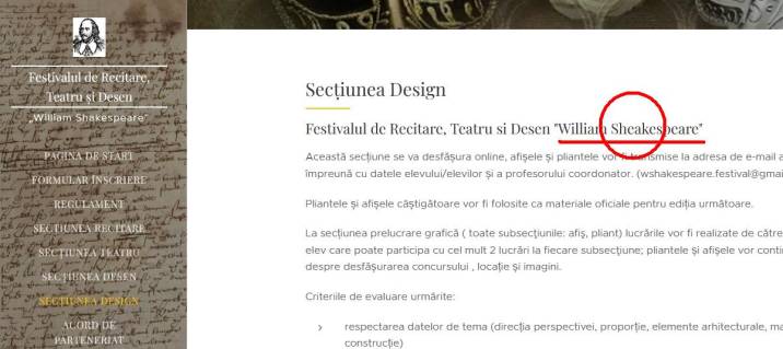 Si vreau sa analizez si prezint un „concurs” aparent ca idee destul de interesant. Concursul William Shakespeare, sub